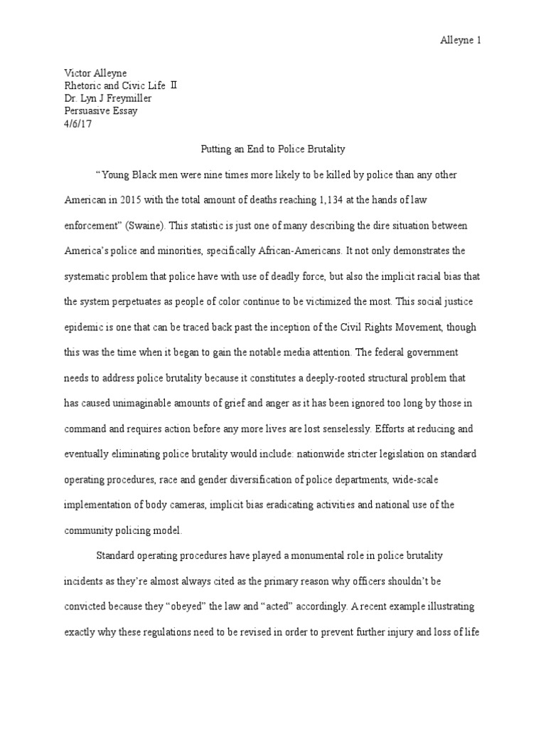 Counter Argument Essay On Police Brutality Essay Example